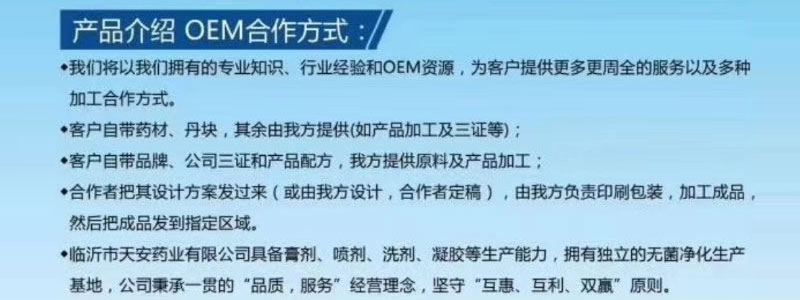 临沂市天安药业有限公司是一家生产企业,位于山东革命老区,著名旅游区蒙山--平邑县,集研发、生产、销售、药材流通为一体于2015年顺利通过了ISO9001国际质量管理体系认证,同时承担国家级星火计划,生产管理规范,质量体系严格公司与哈药六厂、达利集团、浙江中医药大学中药饮片厂建立长期合作关系目前主要生产乳酸平衡洗液,乳酸杆菌平衡水凝胶等妇科产品