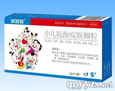 Drug name: Pediatric Paracetamol and Amantadine Hydrochloride Product categories: Western Medicine Production unit: Jindao Pharmaceutical Co.,LTD,Hainan Approval number: guo yao zhun zi No.H46020512 specifications: 2g*12 ingredients: Compound preparation. Acetaminophen 0.1g, amantadine hydrochloride 0.04g, calculus bovis factitius 4 Usage and dosage: Taking with boiled water. Twice daily.