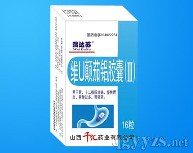 Drug name: Vitamin U Belladonna and Al Capsules (III) 32 pieces Product categories: Western Medicine Production unit: Qian Hui Pharmaceutical Co.,LTD,Shanxi. Approval number: guo yao zhun zi No.H14022934 ; specifications: 32s Usage and dosage: Oral,adults one piece once and three times daily.