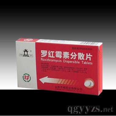 Drug name: Roxithromycin Dispersible Tablets Product categories: Western Medicine Production unit: Qidu Pharmaceitical Co.,LTD,Shangdong Approval number: guo yao zhun zi No.H20083550 ; Usage and dosage: Oral on an empty stomach, general treatment for 5 ~ 12. Adult a 150 mg, 2 times a day. Can also be a 300 mg, 1 times a day. Once children according to the weight 2.5 ~ 5 mg/kg, 2 times a day.