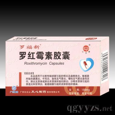 Drug name: Roxithromycin Capsules 2 Product categories: Western Medicine Production unit: Tianxin Pharmaceutical Co.,LTD,Baiyunshan,Guangzhou Approval number: guo yao zhun zi H10980134 specifications: 150mg*10
