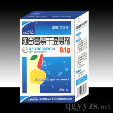 Drug name: Azithromycin for Suspension Product categories: Western Medicine Production unit: Sanjing Pharmaceutical Co.,LTD,Harbin Pharmaceutical Group Approval number: guo yao zhun zi H20057332 ; specifications: 12 bags