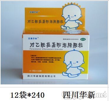 Drug name: Paracetamol Effervescent Granules Product categories: Western Medicine Production unit: Huaxin Pharmaceutical Co.,LTD.,Sichuan Approval number: guo yao zhun zi No.H20003850 specifications: 12bags