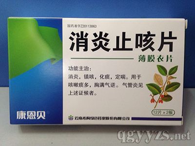 Drug name: Kangengbei Xiaoyanzhike Tablets Product categories: Traditional Chinese Medicine Production unit: Kangengbei Group Xitao Pharmaceutical Co.,LTD Yunnan. Approval number: guo yao zhun zi No.Z20113063 ; specifications: 12*2*500 ingredients: Thorny elaeagnus leaf, radix platycodi, radix pseudostellariae, radix stemonae,etc. Usage and dosage: Oral,2 pieces once and three times daily.