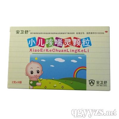 Drug name: 2g*9 Xiaoerkechuanling Granules Product categories: Traditional Chinese Medicine Production unit: Xuyang Pharmaceutical Co.,LTD,Sichuan. Approval number: guo yao zhun zi No.Z51020308 specifications: 2g*9*320 ingredients: Ephedra, honeysuckle, radix isatidis, bitter apricot kernel,etc. Usage and dosage: With boild water,2 years old of less than 1 g at a time, a 1.5 g of 3 to 4 years old, 5 to 7 years old a 2 g, 3 ~ 4 times a day.