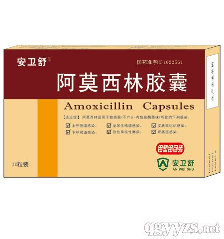 Amoxicillin capsules, indications for amoxicillin is suitable for sensitive bacteria (not producing beta lactamase strains) caused by infection of the following: 1. The hemolytic streptococcus, streptococcus pneumoniae, staphylococcus aureus, or caused by haemophilus influenzae, otitis media, sinusitis, pharyngitis, tonsillitis, upper respiratory tract infection. 2. E. coli, singular proteus or dung enterococcus caused by urinary tract infection. 3. The hemolytic streptococcus, staphylococcus aureus, or skin soft tissue infection caused by e. coli. 4. The hemolytic streptococcus, streptococcus pneumoniae, staphylococcus aureus, or caused by haemophilus influenzae acute lower respiratory tract infections such as bronchitis and pneumonia. 5. Acute uncomplicated gonorrhea. 6. This product can be used in the treatment of typhoid fever, typhoid carrier and leptospirosis. Amoxicillin background with clarithromycin, sola azole drug sanlian stomach, duodenum helicobacter pylori eradication, lower digestive tract ulcer recurrence.