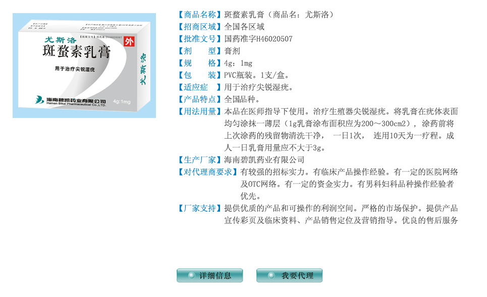 斑蝥素乳膏(商品名:尤斯洛)