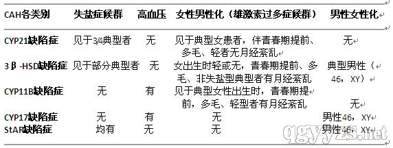 (一)CAH各类型临床表现鉴别