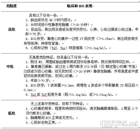 美国心脏病学会/美国心脏病协会(ACC/AHA)非ST段抬高型ACS危险性分层评判标准