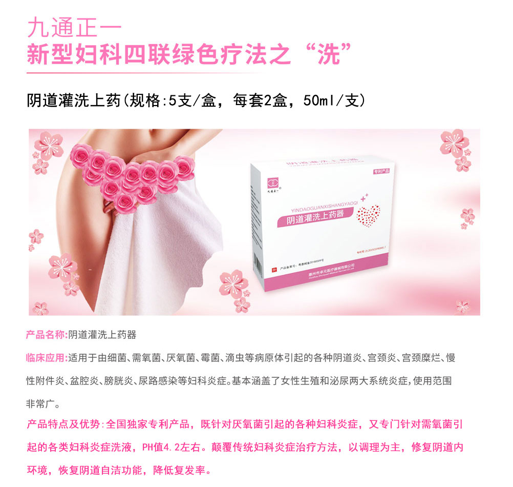 本品适应于霉菌性、滴虫性、细菌性、老年性、非特异性阴道炎,宫颈炎、白带增多的异味清除等。产品适用于医院、门诊、美容院、康养中心。