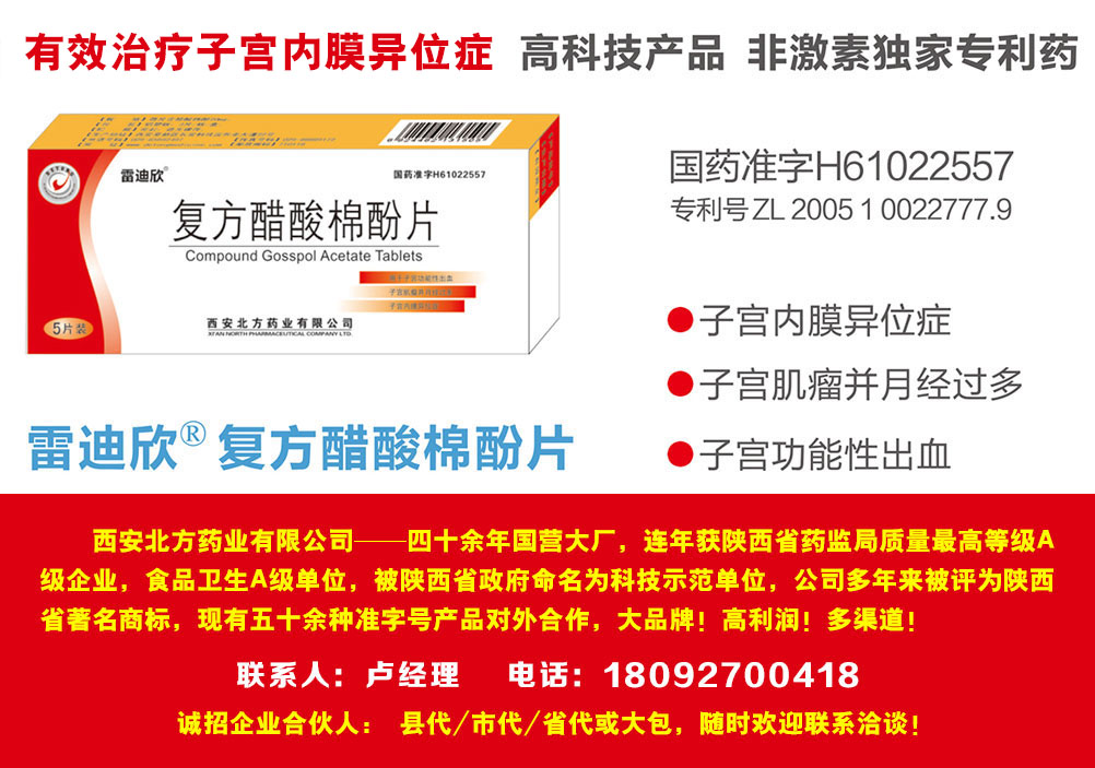 用于子宫功能性出血、子宫肌瘤并月经过多及子宫内膜异位症
