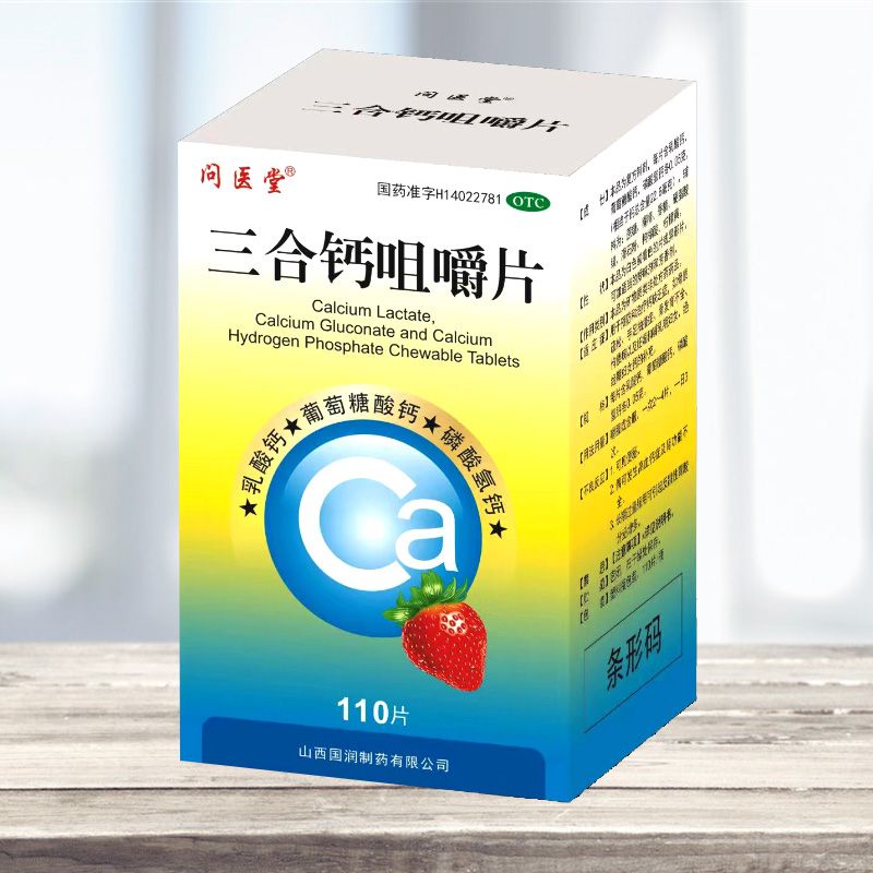 | 【主要成份】 | 本品为复方制剂,每片含乳酸钙、葡萄糖酸钙、磷酸氢钙各0.05克,(相当于钙总含量22.6毫克)辅料为: |