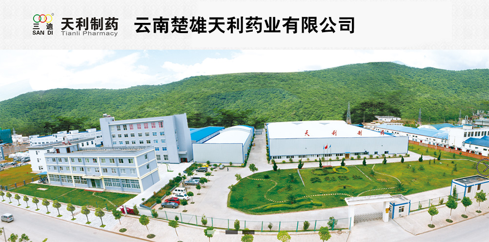 云南楚雄天利药业有限公司位于云南省楚雄市经济技术开发区医药工业园,距昆明140公里。公司成立于1993年,占地面积45亩。公司主要从事药物研发、药品生产、食品生产、消毒产品、卫生用品及化妆品生产,现有员工250人。建有中药饮片车间、中药提取车间、头孢菌素车间、固体制剂车间及液体制剂车间共五条生产线。具有年产片剂10亿片,胶囊5亿粒,酊剂2亿支,合剂1亿瓶,中药饮片100吨,中药前处理及提取1000吨的生产能力。