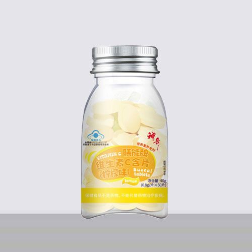 | 成 份 | 【原料】L-抗坏血酸 【辅料】山梨糖醇,DL-苹果酸,硬脂酸镁,天门冬酰苯丙氨酸甲酯(又名阿斯巴甜),柠檬黄铝色定(以柠檬黄计),亮蓝铝色定(以亮蓝计),薄荷香精。 |