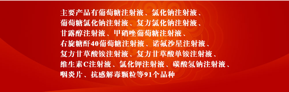 公司是陕、甘、宁、蒙、晋五省接壤区域一家西药制药企业,现有大容量注射剂、小容量注射剂、片剂、胶囊剂和颗粒剂五个剂型。2003年通过国家GMP认证,2008年第二次通过国家GMP认证。主要产品有葡萄糖注射液、氯化钠注射液、葡萄糖氯化钠注射液、复方氯化钠注射液、甘露醇注射液、甲硝唑葡萄糖注射液、右旋糖酐40葡萄糖注射液、诺氟沙星注射液、复方甘草酸铵注射液、复方甘草酸单铵注射液、维生素C注射液、氯化钾注射液、碳酸氢钠注射液、咽炎片、抗感解毒颗粒等91个品种。