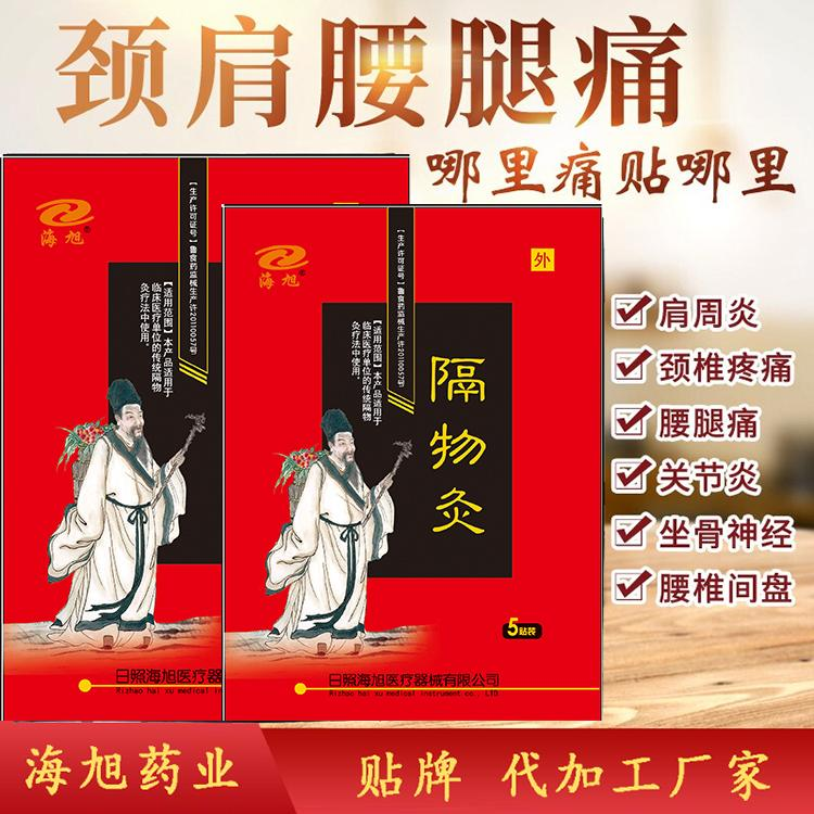 | 用法用量 | 打开包装袋,取出隔物灸后撕去两边胶贴保护纸,将隔物灸贴在人体相关穴位上即可。对胶贴过敏者,可将隔物灸正面对准穴位,反贴在紧身衣上即可 |