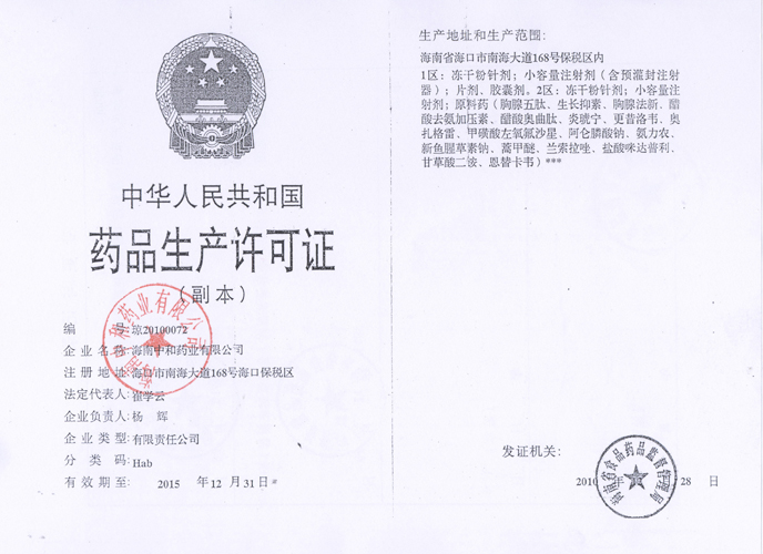 海南中和药业有限公司是国内 早专业研发生产“全化学合成多肽类新药”的制药企业。