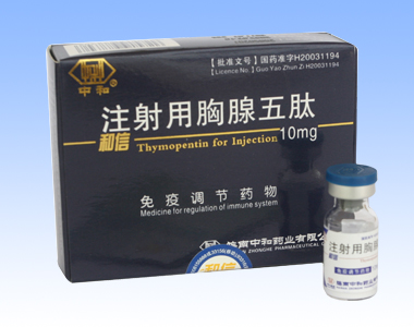 作为胸腺五肽的原研单位,我公司的胸腺五肽产品是国内临床应用 多的免疫功能双向调节药物,在2003年的非典防治工作中做出了重要的贡献,在国内近千家大型医院及上百万医生与患者中有着良好的口碑。该产品上市十年无一例不良反应报告,英联邦国家、香港、中亚等国家和地区已将中和药业的和信(注射胸腺五肽)列为药品目录。