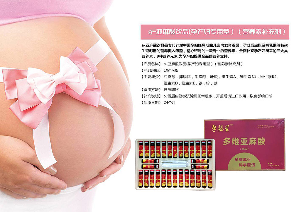 亚麻酸,卵磷脂,牛磺酸,叶酸,维生素A,维生素B1,维生素B2,维生素D,维生素E,铁,锌,碘