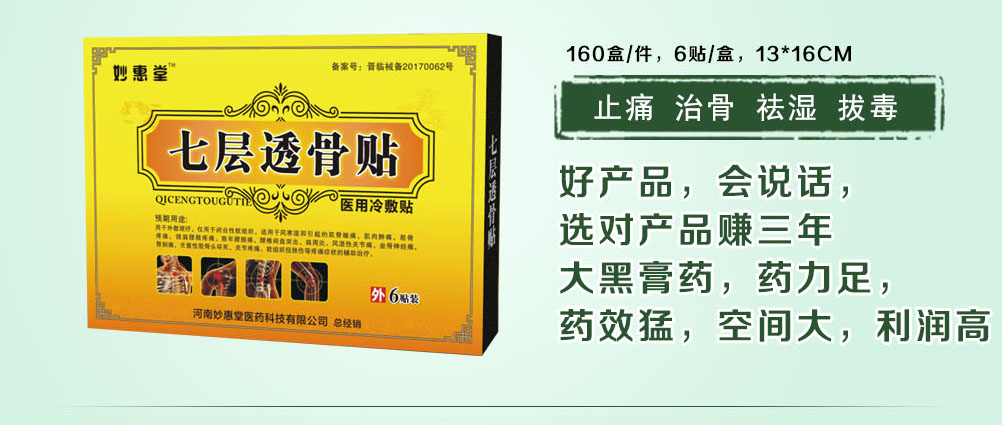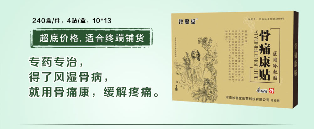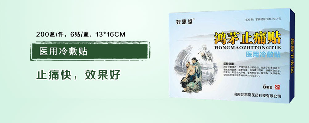 | 【产品用途】 | 用于外敷理疗,仅用于闭合性软组织。适用于风寒湿邪引起的肌骨酸痛、肌肉肿痛、筋骨疼痛、颈肩腰腿疼痛、陈年腰腿痛、腰椎间盘突出、肩周炎、风湿性关节痛、坐骨神经痛、骨刺痛、无菌性股骨头坏死、关节疼痛、软组织扭挫伤等疼痛症状的辅助治疗。 |