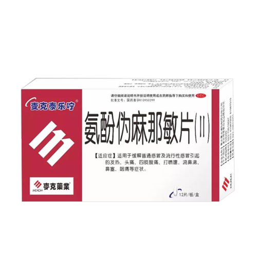| 成 份 | 本品为复方制剂,每片含对乙酰氨基酚320毫克,盐酸伪麻黄碱30毫克,马来酸氯苯那敏2毫克。 |