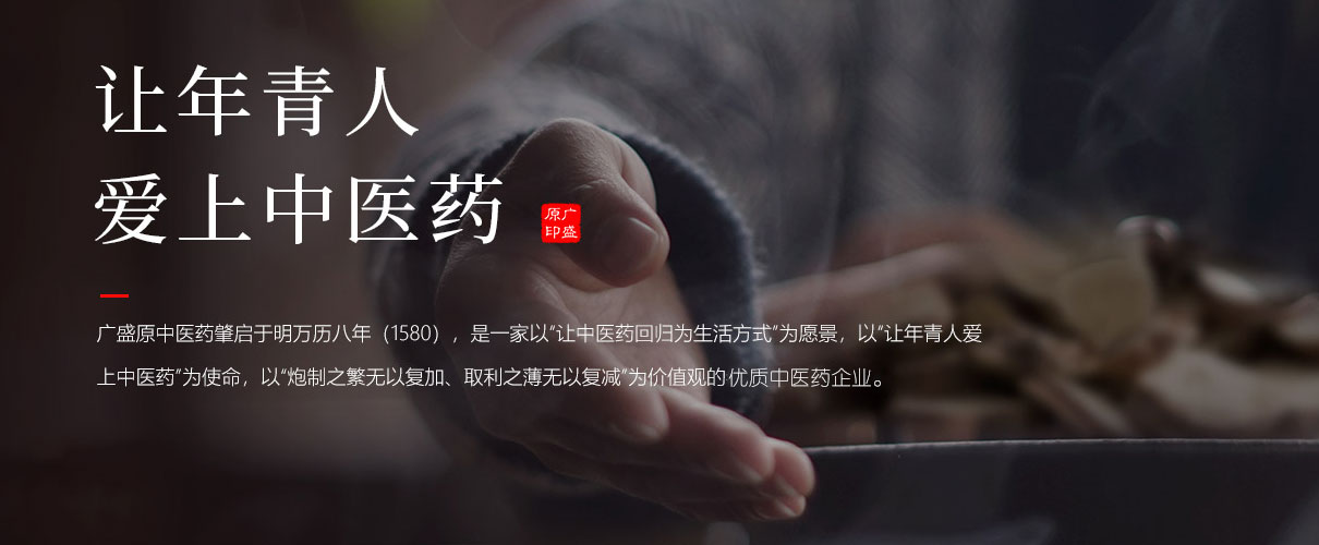 广盛原中医药肇启于明万历八年(1580年),历经明代、清代、民国、现代至今,是一家以“让中医药回归为生活方式”为愿景,以“让年青人爱上中医药”为使命,以“炮制之繁无以复加、取利之薄无以复减”为价值观的优质中医药企业。