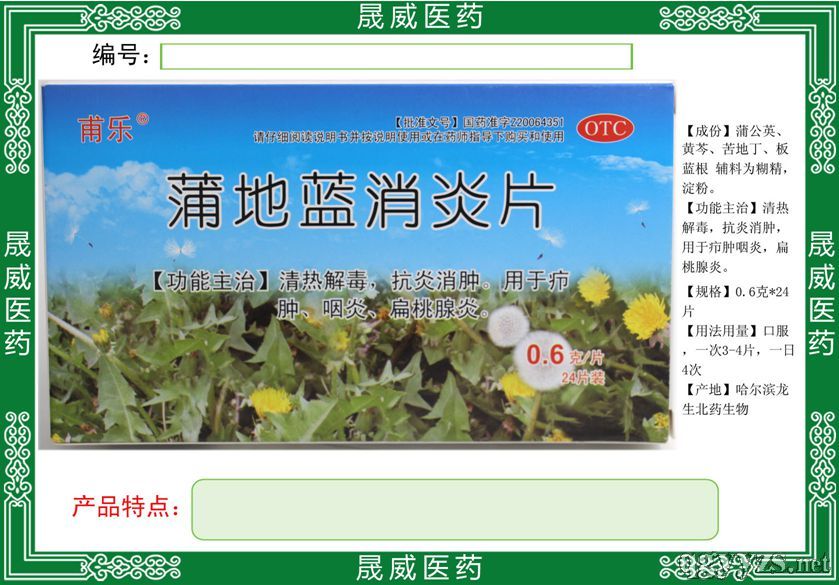 | 【成 份】 | 地黄、芒硝、玄参、桔梗、甘草、金银花、青黛、黄连、连翘、龙胆、牛蒡子(炒)、水牛角浓缩粉、赤芍。 |