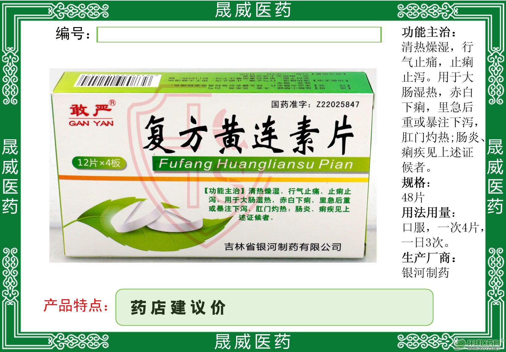 | 【规 格】 | 0.25G*12片 |