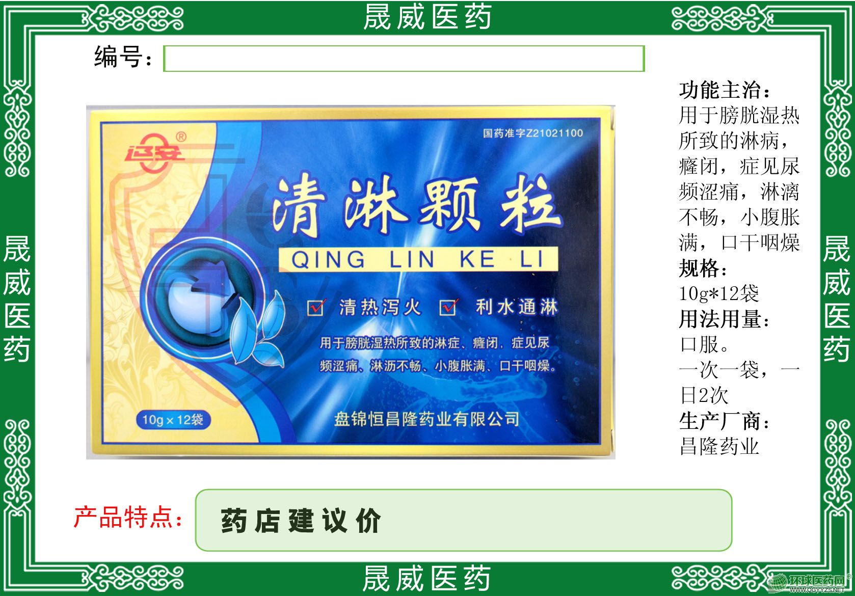 | 【规 格】 | 10g*10袋 |