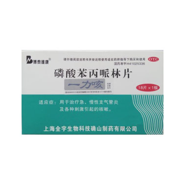 成 份 | 本品每片含主要成分磷酸苯丙哌林26.4毫克(相当于20毫克苯丙哌林)。辅料为淀粉、蔗糖、糊精。 |