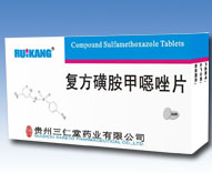 | 【主要成份】 | 本品为复方制剂,其组分为:每片含磺胺甲噁唑0.4g和甲氧苄啶0.08g。 |