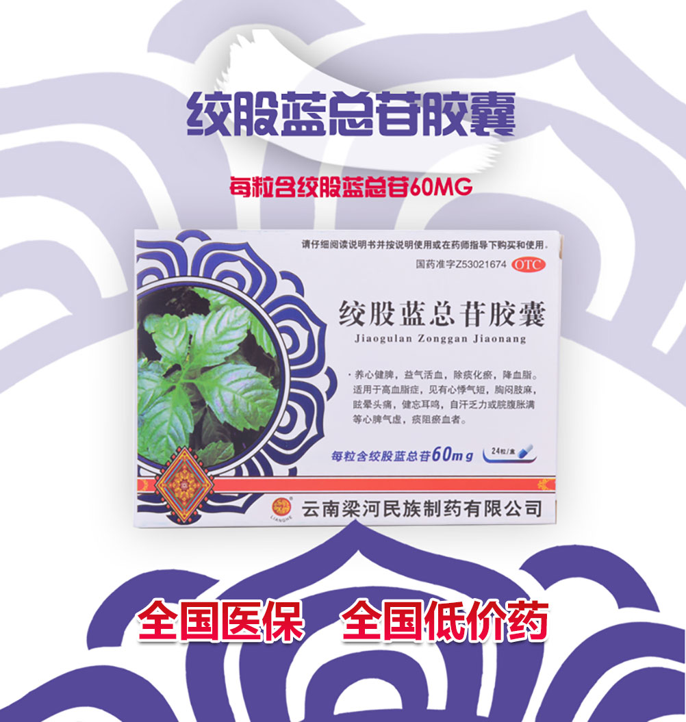 绞股蓝总苷胶囊,养心健脾,益气和血,除痰化瘀,降血脂。适用于高血脂症,见有心悸气短,胸闷肢麻,眩晕头痛,健忘耳鸣,自汗乏力或脘腹胀满等心脾气虚,痰阻血瘀者。