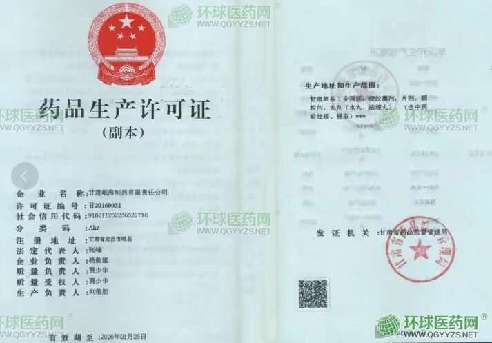 甘肃岷海制药有限公司是隶属于甘肃岷州实业集团的一个实力较强的民营股份制制药企业,厂址位于中外闻名的有“千年药乡”之称的甘南腹地——岷县,厂区在工业开发区内,占地面积60000平方米。建筑面积5400平方米,其中洁净级别为30级的洁净区达1640平方米。有四条生产线,即:丸剂、片剂、胶囊剂、颗粒剂生产线。年生产能力为:丸剂20950件、片剂17693件、胶囊剂10000件、颗粒剂72362件。企业现有员工207人,其中高级职称15人,初级职称18人,专业检验人员6人,管理人员大专以上学历占30%。现拥有一支团结、奋进、高水平、年轻化的科研队伍和较健全的科研设施。企业拥有超微粉碎、纯化分离和全自动胶囊填充等加工生产技术和设备,同时拥有国内的年加工提取中药材2000吨的超声波提取设备以及多种全自动包装等设备和技术,另配备有薄层扫描仪、液相色谱仪等先进检测仪器设备。