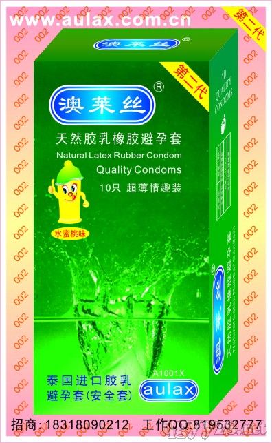 - 夜场娱乐场所大油量澳莱丝避孕套.超薄浪漫装.第二代 批准文号: 粤食药监械生产许20122206号规 格: 10s
