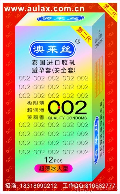 - 澳莱丝避孕套.极限薄002三只装.第2代 批准文号: 粤食药监械生产许20122206号规 格: 3s