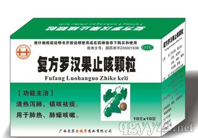 - 复方罗汉果止咳颗粒 批准文号: 国药准字Z45021638规 格: 10g*10袋*100盒