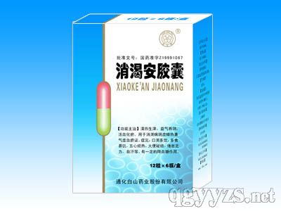 采用地黄、知母、黄连、地骨皮、枸杞子、玉竹、人参、丹参制成。作用:清热生津,益气养阴,活血化瘀。用于消渴病阴虚燥热兼气虚血瘀证。症见:口渴多饮,多食易饥,五心烦热,大便秘结,倦怠乏力,自汗等。有一定的降血糖作用。