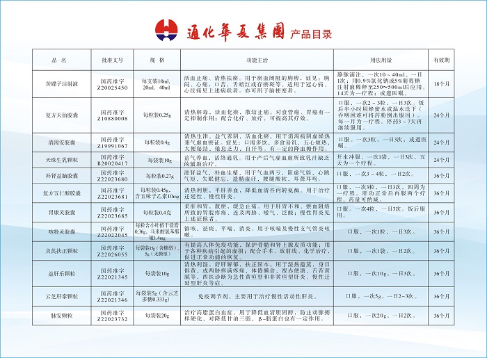 以生产固体制剂和口服液体制剂为主,以复方天仙胶囊、芪冬颐心口服液、贞芪扶正颗粒、复方丹参喷雾剂、消渴安胶囊、复方首乌口服液、复方丹蛭片等一批新老名优产品为企业和社会不断创造巨大的效益。