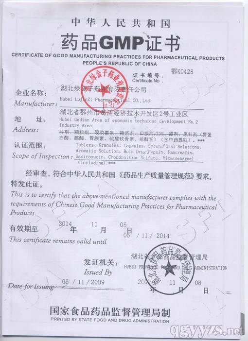 发证机关: 湖北省药品监督管理局
