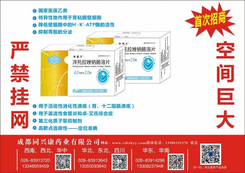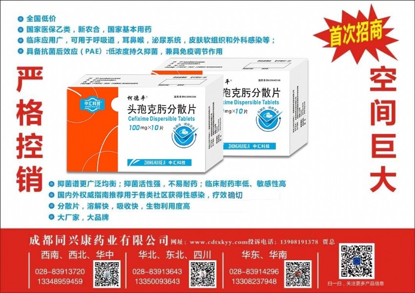 头孢克肟分散片/泮托拉唑钠肠溶片首次招商,医保品种,严格控销,经典用药,市场稳定增长!