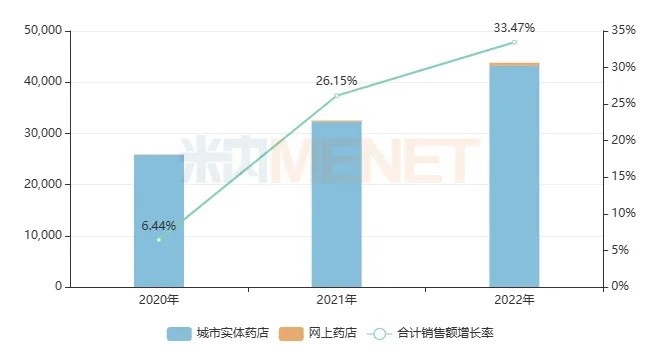头孢克肟属于第三代头孢菌素类抗生素,据米内网数据显示,2022在中国三大终端六大市场,头孢克肟分散片的合计销售额超过了14亿元,近三年在零售药店终端(城市实体药店+网上药店)销售持续大涨。随着全球医疗水平的不断提高和对抗生素药物需求的增加,头孢克肟市场将保持稳定增长态势。