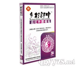 - 乡村郎中远红外腰痛贴 批准文号: 黔食药监械(准)字2010第2260043号规 格: 9cm×12cm×3贴×300盒