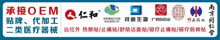 可专业承接冷敷贴、热敷贴、止痛贴、舒筋活血贴、磁疗止痛贴、磁疗筋骨贴等多款二类医疗器械的OEM贴牌、代加工服务,更成为仁和、广药白云山、拜迪生物、南京同仁堂乐家老铺、修正药业等药企的代工合作伙伴,用实力验证代工品质。