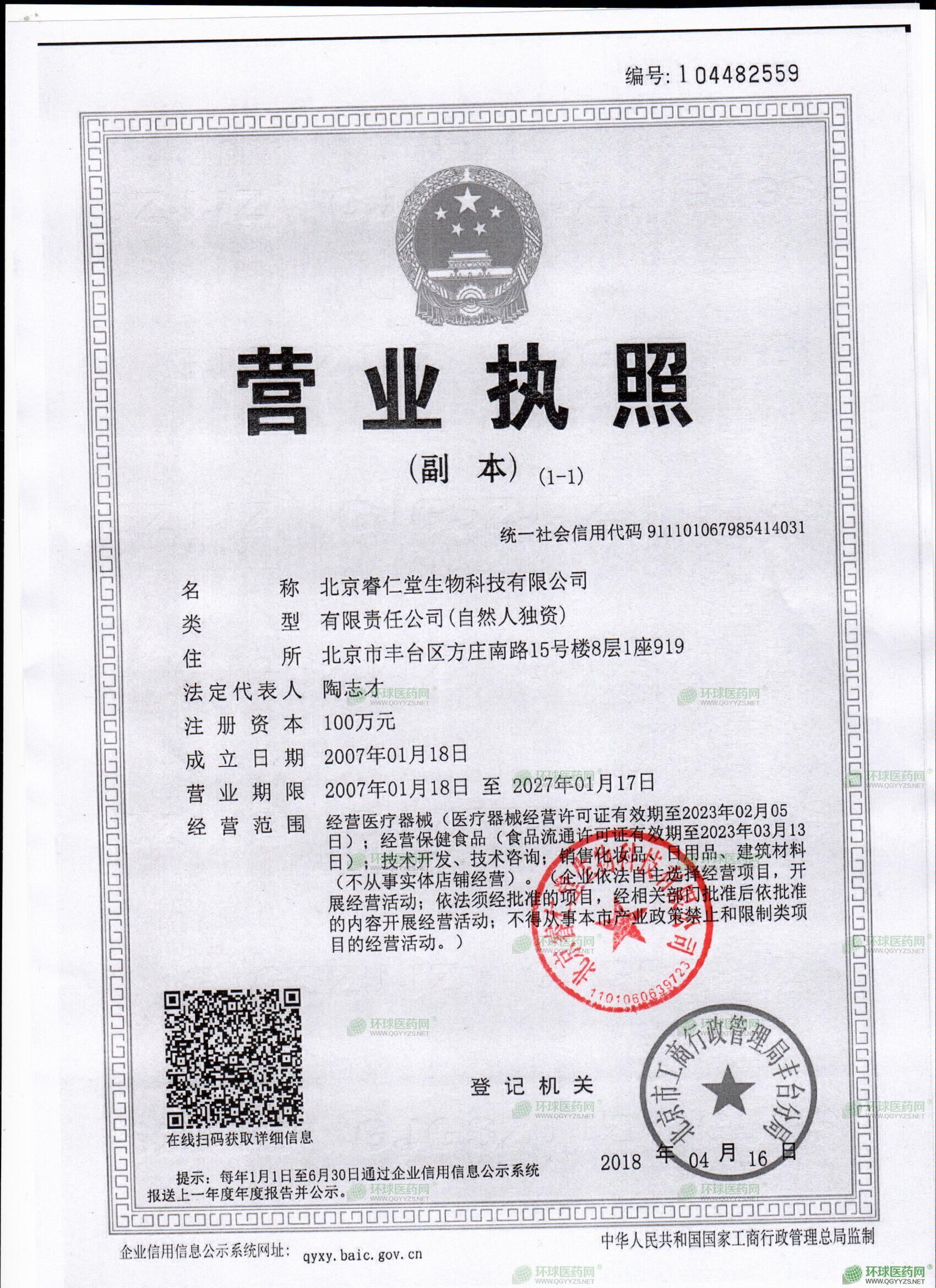 北京睿仁堂生物科技有限公司成立于2007年,自成立以来一直致力于医药推广、医疗器械经营、保健食品研发销售等业务。