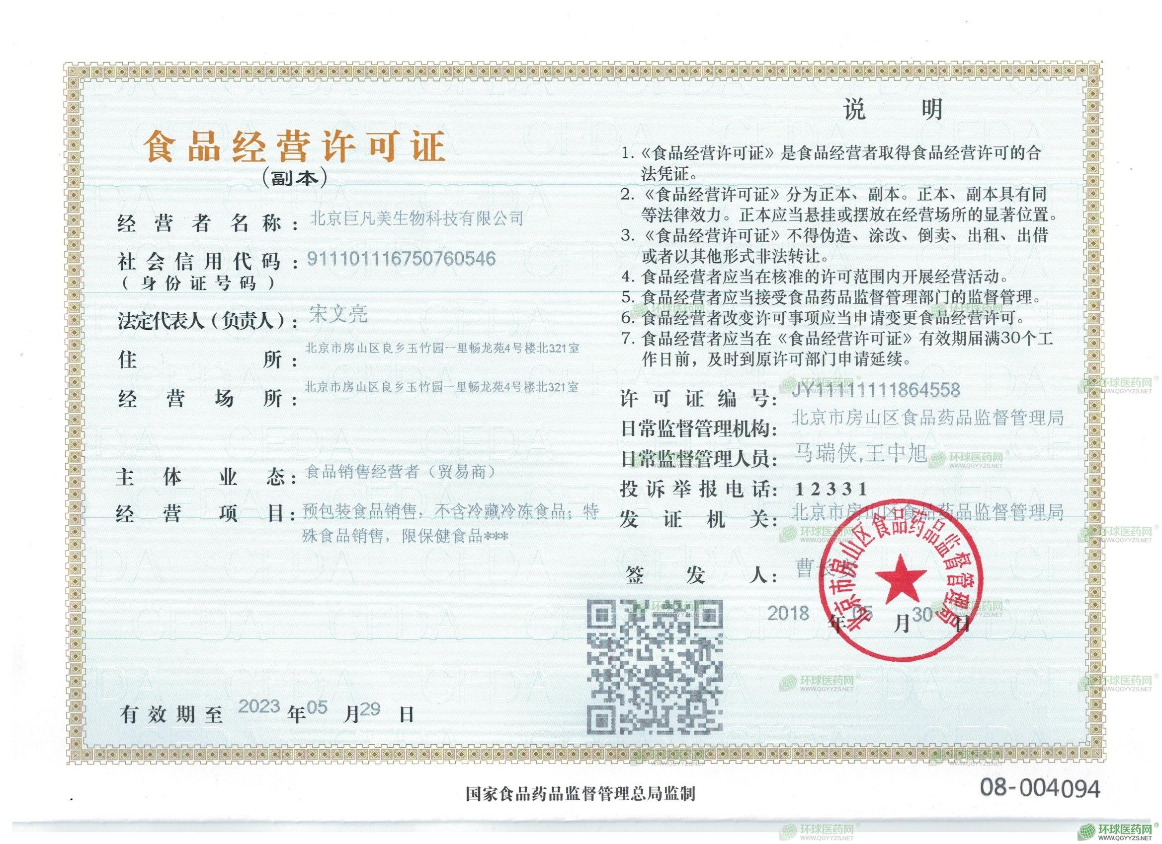 北京巨凡美生物科技有限公司成立于2008年5月,是一家新兴活力的股份制企业,总部位于祖国的心脏——北京,公司以药品及营养保健产业为发展方向,自成立以来,不断加大科技投入和市场开拓力度,以营养保健产业为专业发展方向,以“巨凡美”为品牌,致力于产品的开发和销售。新产品开发前景广阔。同时公司还与国际儿童智力营养学会联手,共同致力于保健食品的开发,不断推出高新产品,在蓬勃发展的保健食品行业中,独树一帜,遥遥。
