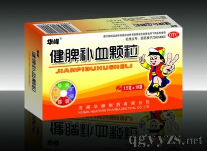 健脾补血颗粒处方源自1078年《太平惠民和剂局方》中的补气健脾的方剂四君子汤加味而成。全方8味中药:党参、茯苓、皂矾、神曲茶、黑豆(炒)、白术、陈皮、甘草。“华峰”健脾补血颗粒补血、益气、健脾和胃、消积。用于脾虚血少所致的面黄肌瘦,食少体倦以及营养性、缺铁性贫血见上述症候。