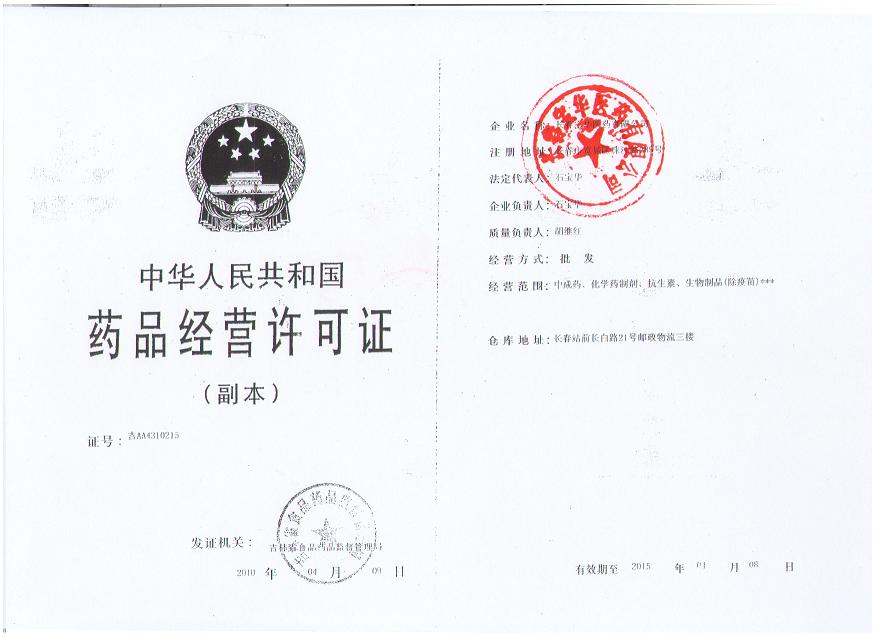 公司坐落于新区--长春新区,占地面积30000m²,办公楼4000m²,仓库10000m²,生产车间12000m²,2015年已通过新版国家GSP质量规范认证,并与国内数十家知名药企结为长久战略合作伙伴,成为行业翘楚,具有一定影响力。