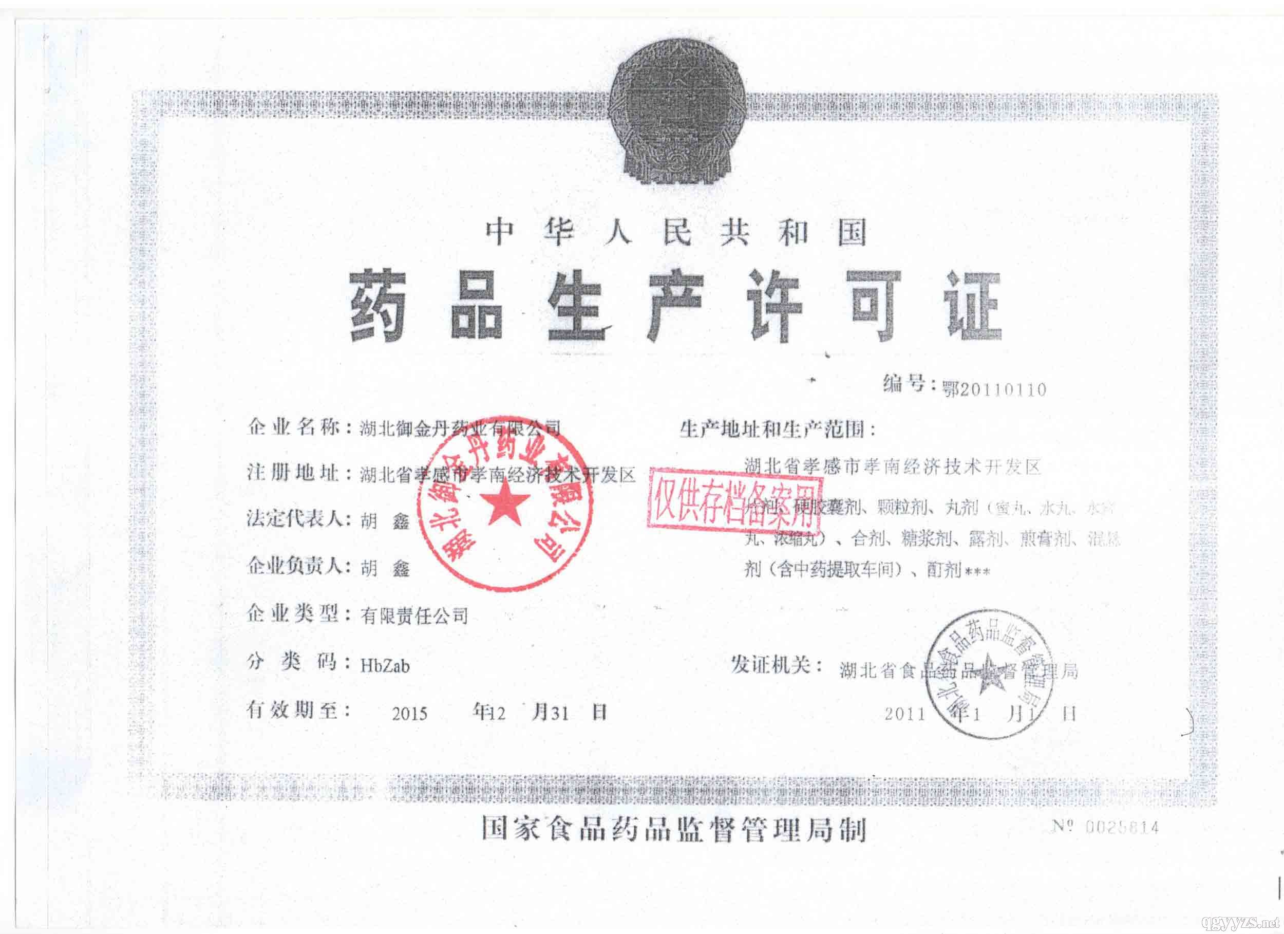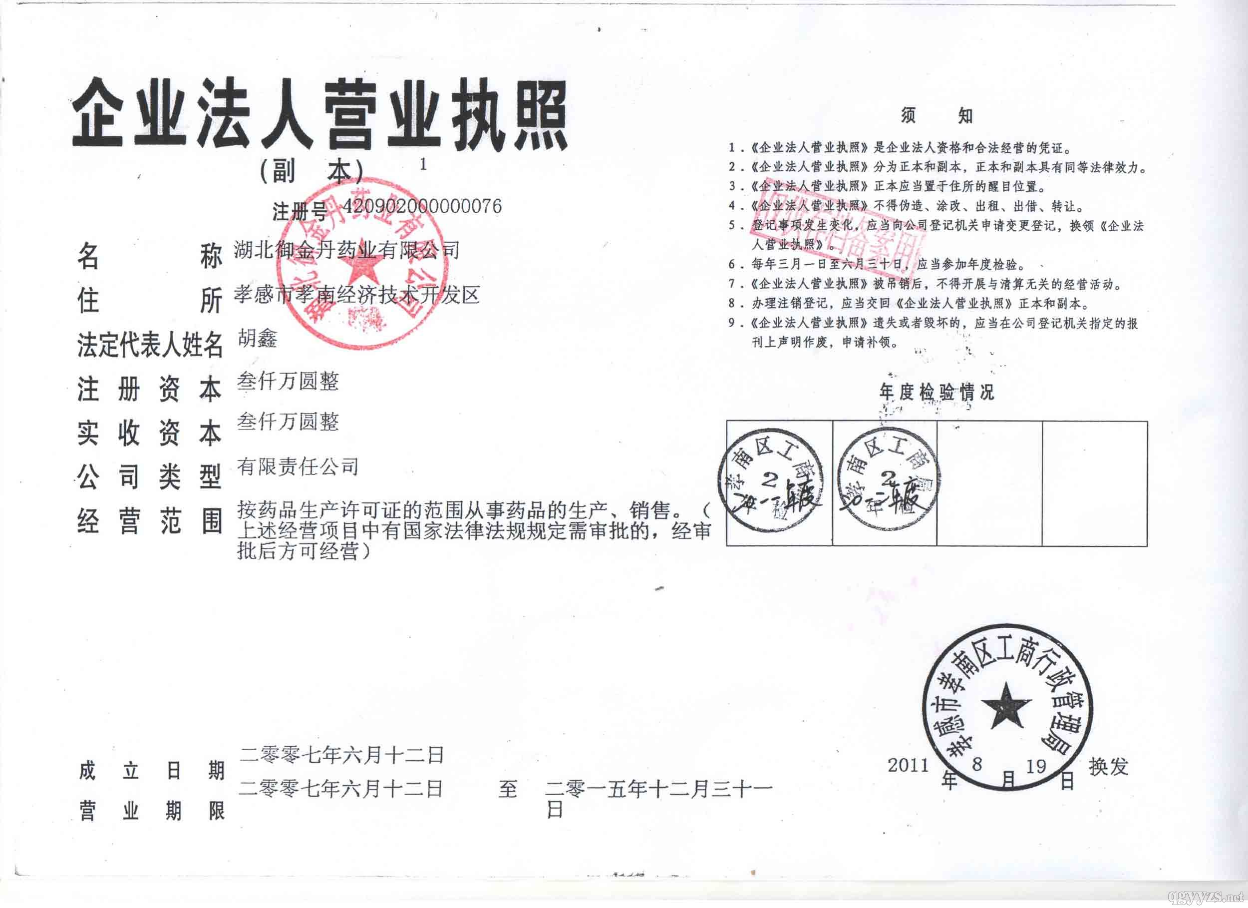[企业法人]:湖北御金丹药业有限公司