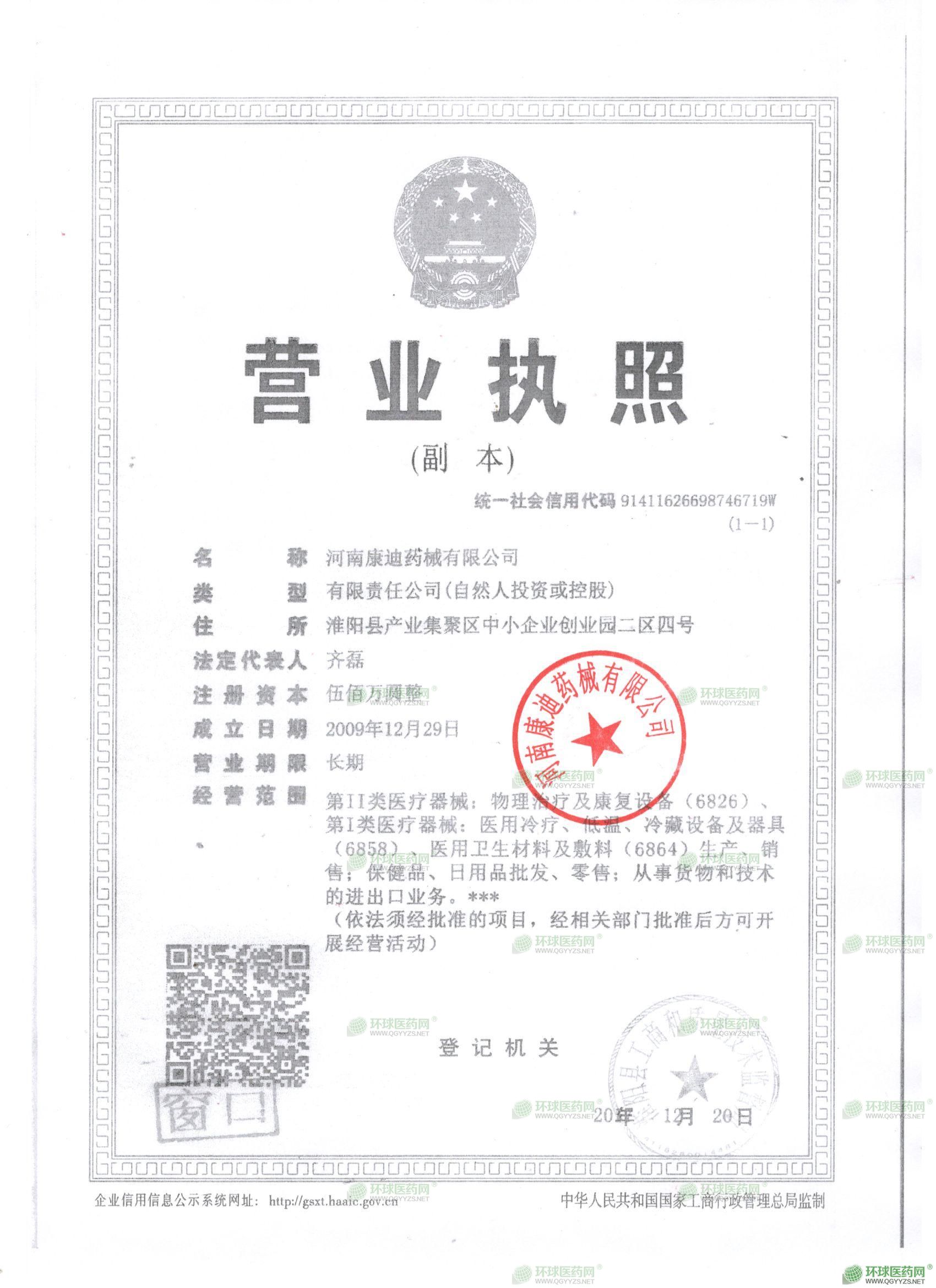 [企业法人]:河南康迪药械有限公司