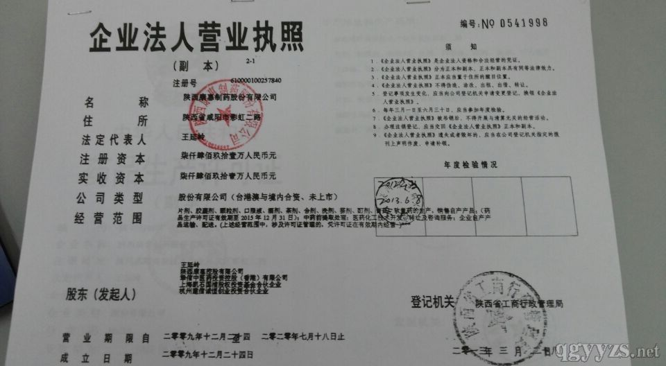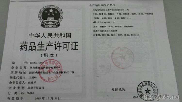 生产范围: 硬胶囊剂,片剂,颗粒剂,茶剂,合剂,酒剂;陕西省咸阳市四号路北段1号硬胶囊剂,颗粒剂,片剂,膏药,软膏剂;咸阳市高新开发区高新路硬胶囊剂,颗粒剂,片剂,酊剂,搽剂,洗剂(本地址不含中药前处理及提取)***